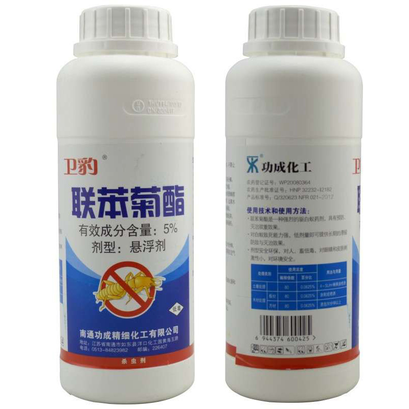 名稱:衛(wèi)豹聯(lián)苯菊酯 有效成分含量:5% 劑型:懸浮劑 凈重量:500克/瓶;20瓶/箱 毒性:低毒 防治對(duì)象:白蟻 應(yīng)用范圍:用于木材、堤壩、建筑物及周邊土壤防治白蟻。